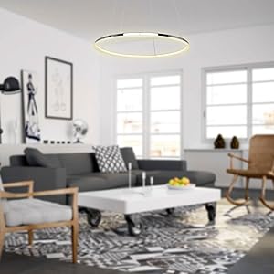 Featured Product UNITARY Brand Modern Warm White LED Acrylic Dining Room Kitchen Pendant Light Fxiture Remote Control Included with 1 Ring Max 35W Chrome Finish 24 inches Diameter A quick website review